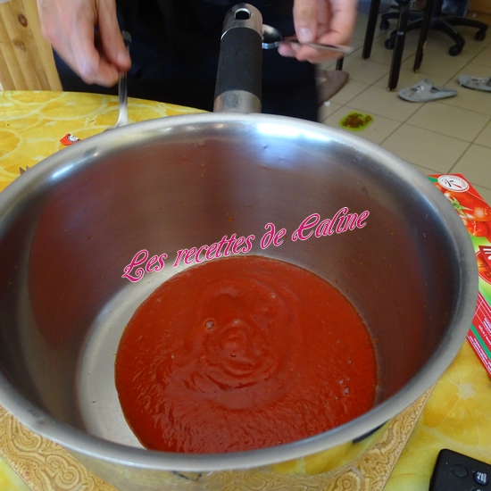 j’avais accompagné ma terrine d’un coulis de tomates que j’avais fait avec 1 brique de coulis, 1 cuil à soupe de concentré de tomates, 2 cuil à soupe d’eau, 1 bonne pincée de thym, sel, poivre et 1 feuille de laurier (ou 1 bonne pincée de laurier concassé comme j’utilise) et laissez mijoter 10 à 15 min à feu très doux
