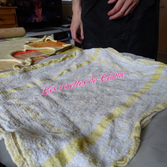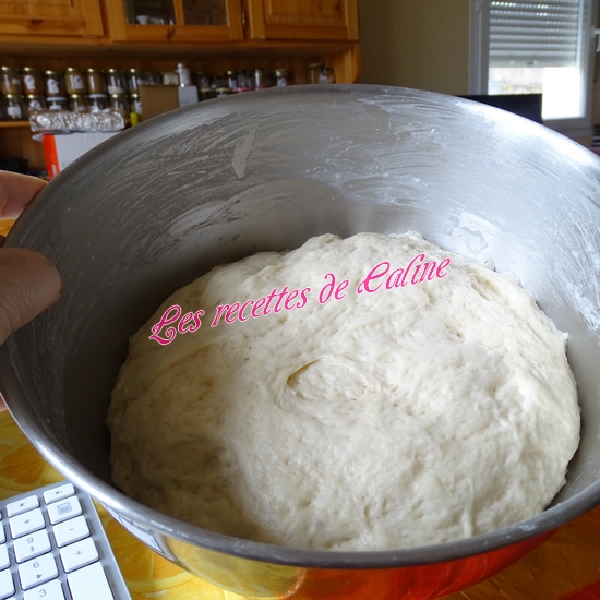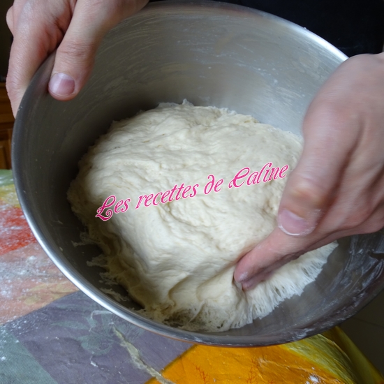 Pétrir 10 min, une fois la pâte bien pétri, laissez lever pendant 1 h a couvert (film étirable c’est beaucoup mieux qu’n torchon, ça garde la chaleur dans le saladier).