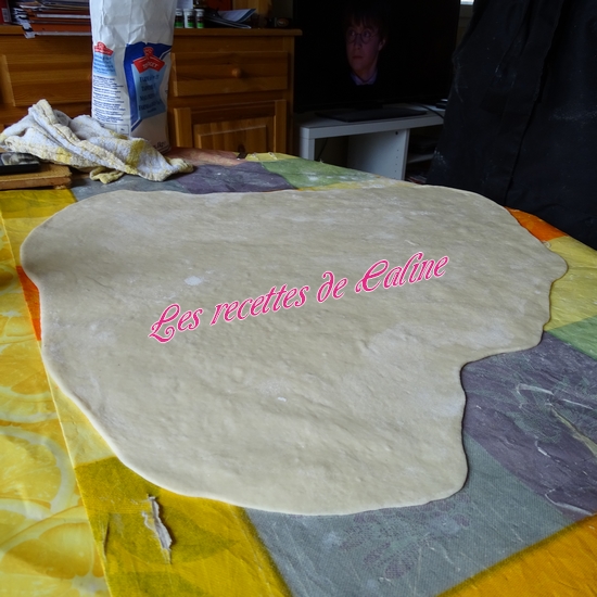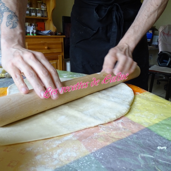 Farinez votre plan de travail et étalez votre pâte au rouleau, jusqu’à 3 mm d’épaisseur.