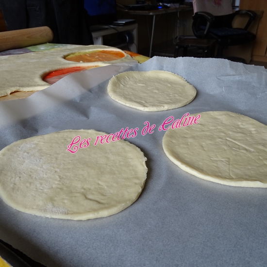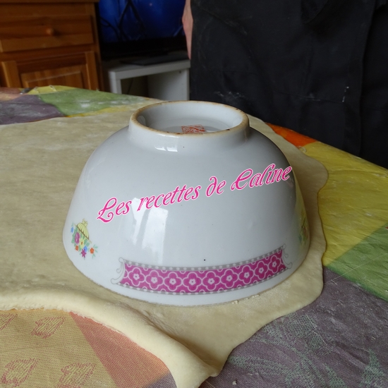 A l’aide d’un bol ou d’un emporte-pièce, découpez vos pains. Déposez-les sur une plaque de cuisson.