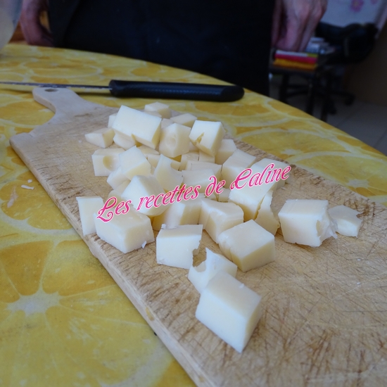 Coupez l’emmental en petits dés et placez-le aussi dans le saladier.