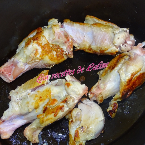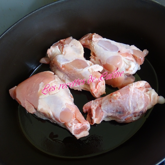 Faire chauffer un wok ou une cocotte avec l’huile d’olive et y faire dorer les pilons de dinde