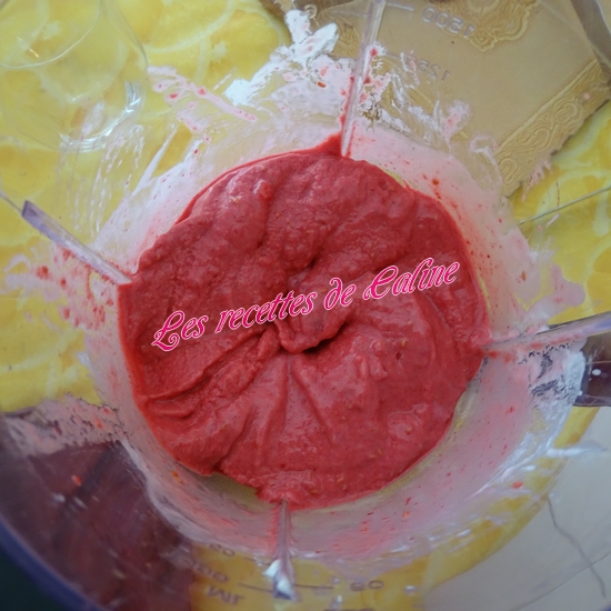 Mixez les framboises et les yaourts jusqu’à obtention d’une texture glacé, Mélangez de temps en temps à l’aide d’une grande cuillère. Vérifiez qu’il ne reste pas de framboises entières.