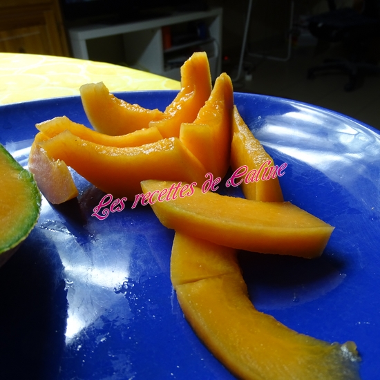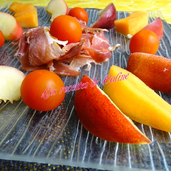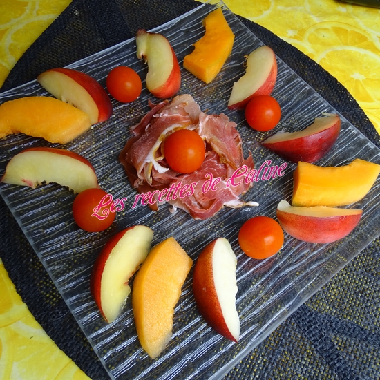 Pelez le melon et la nectarine et coupez-les en morceaux.