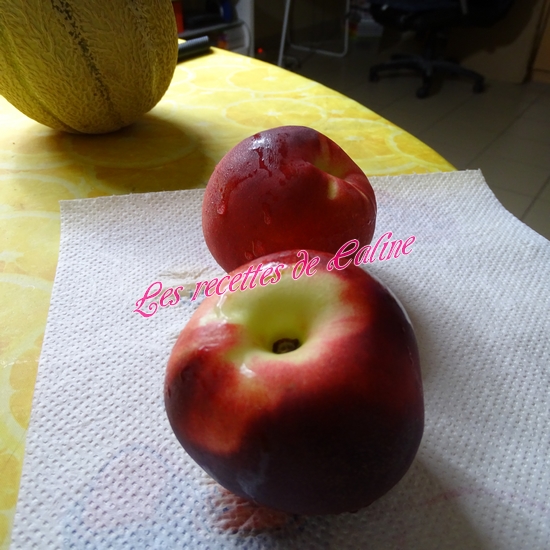 Pelez le melon et la nectarine et coupez-les en morceaux.