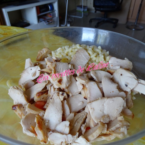 Faites cuire les pâtes comme indiqué sur le paquet, une fois cuites passez-les sous l’eau fraîche et laissez-les