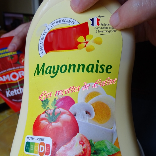 Mayonnaise colorée en rose par une cuillerée de sauce tomate