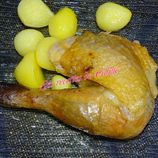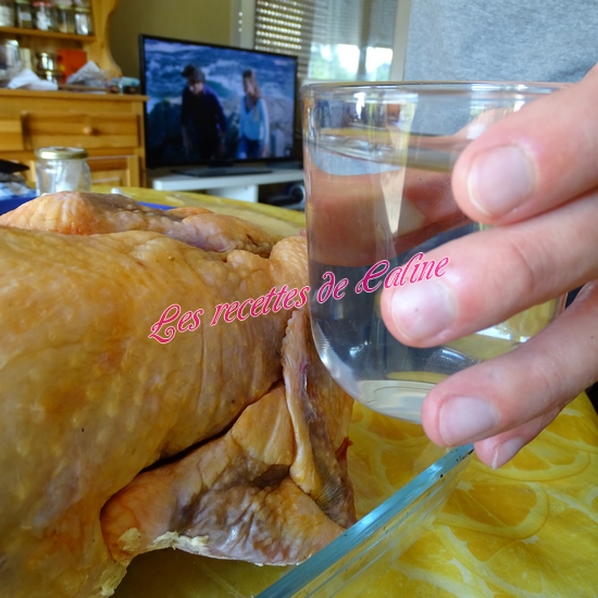 Vérifier qu’il reste toujours un peu de jus de cuisson pour cuire les pommes de terre et arroser la pintade de temps en temps.