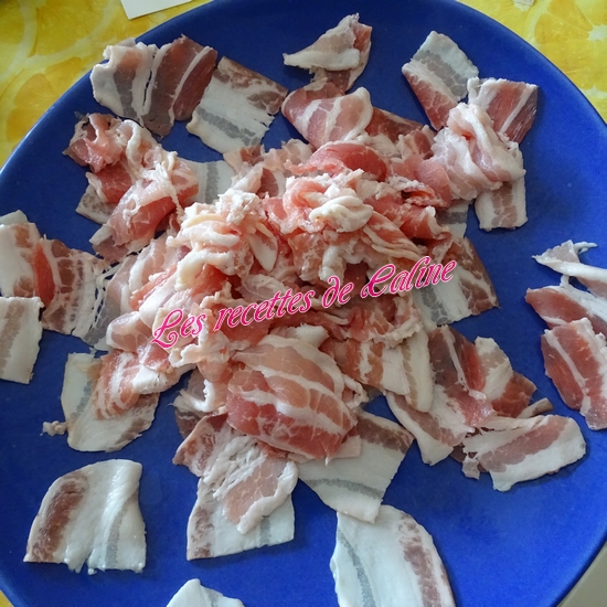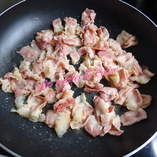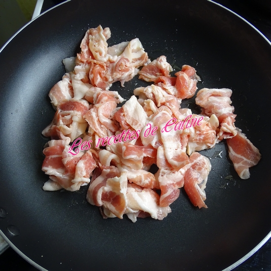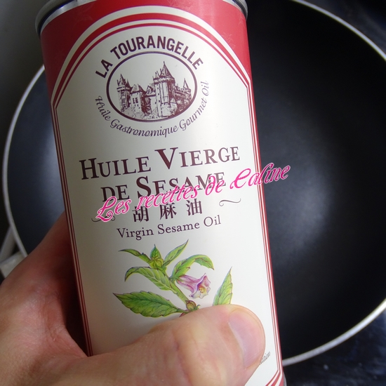 Dans une poêle, faites chauffez de l’huile de sésame puis ajouter les morceaux de poitrine et bien faire cuire.