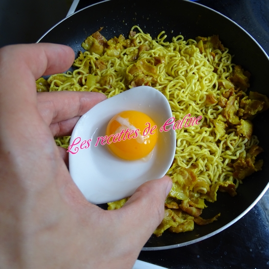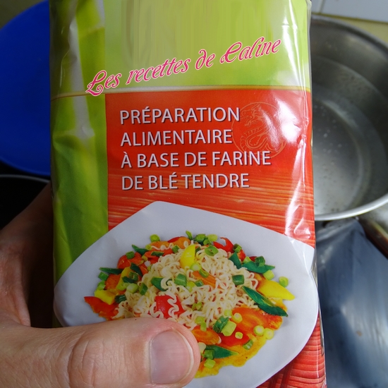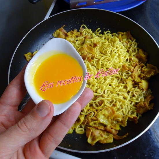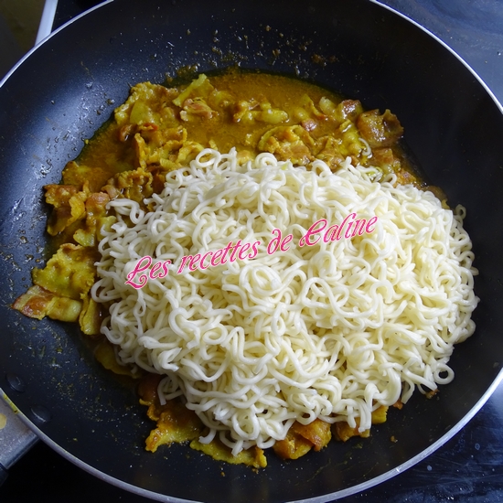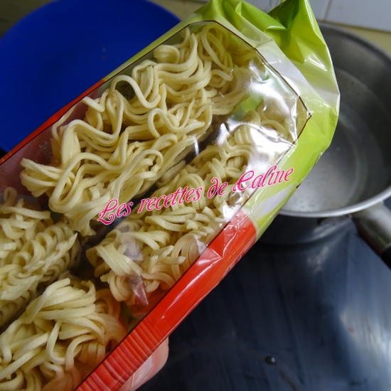 Dans une casserole ou cocotte, portez de l’eau à ébullition, et faites cuire les nouilles. Dés quelles sont cuites, mettre les