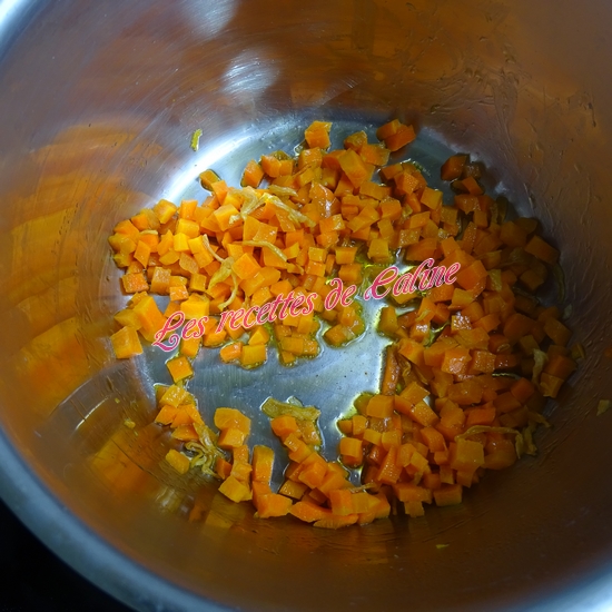 Faites revenir l’oignon et la carotte jusqu’à ce que l’oignon soit translucide.