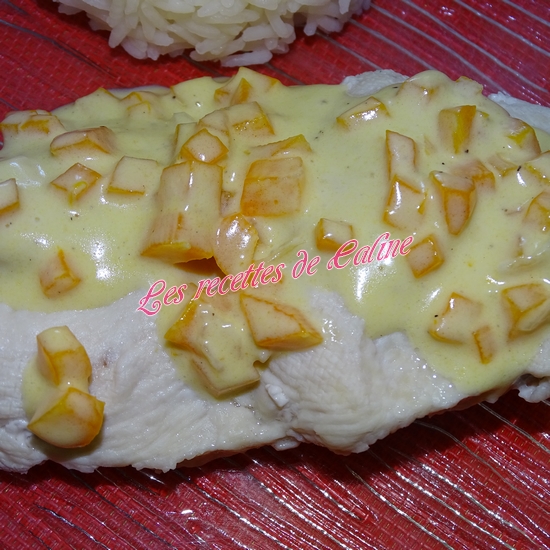 Dressez les blancs de poulet cuits dans les assiettes puis nappez-les de sauce, on passe à table, accompagné de riz .