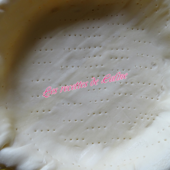 Étalez la pâte dans un moule préalablement beurré (Pour ma part, je ne beurre pas mon moule, vu que j’utilise des moules en papier cuisson) et la piquer à la fourchette.