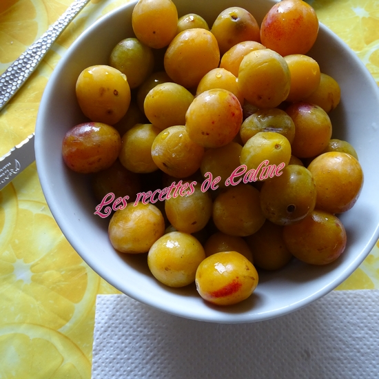 Dénoyautez les mirabelles et les couper en demi-lune.