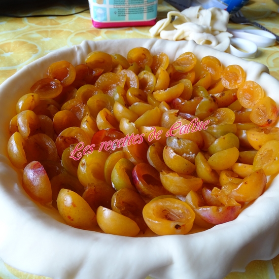 Placez les morceaux de mirabelles coupées en deux sur le fond de tarte en les faisant se chevaucher pour avoir une jolie présentation.