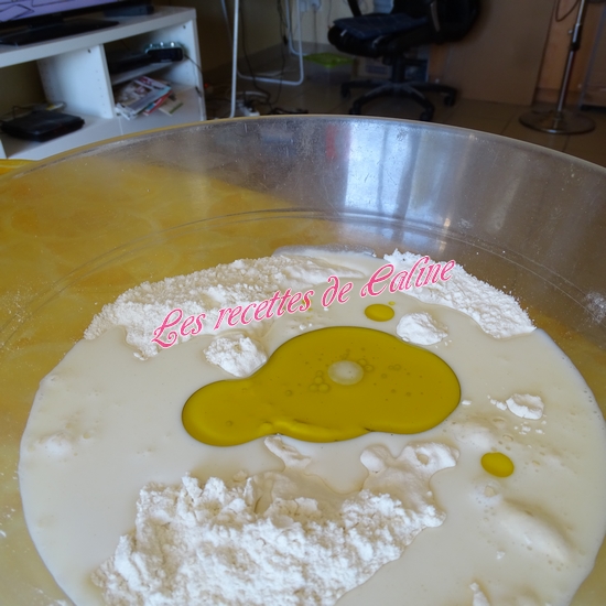Dans un saladier, mélangez la farine, le sucre, le sel et la levure.