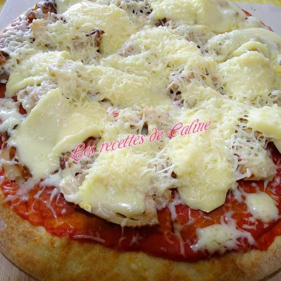 Pour ma part, j’ai garni ma recette avec du coulis de tomates, émincé de poulet, reblochon et emmental, mais après vous pouvez la garnir de ce que vous voulez