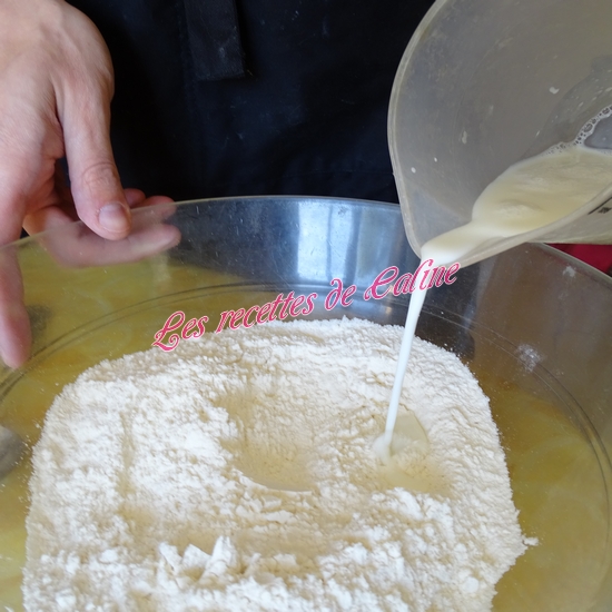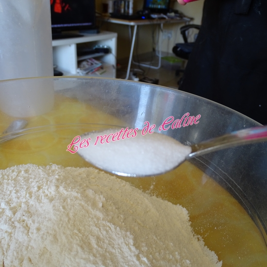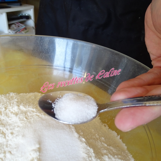 Dans un saladier, mélangez la farine, le sucre, le sel et la levure.