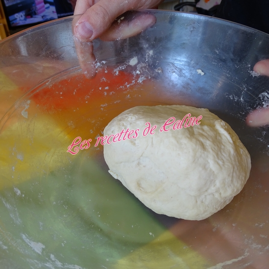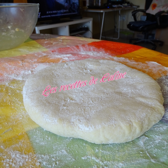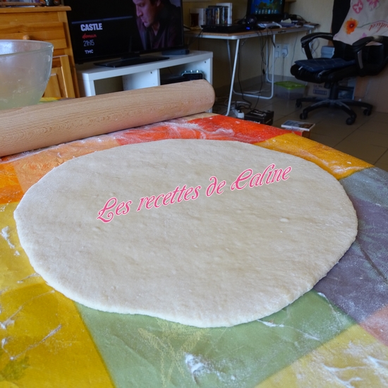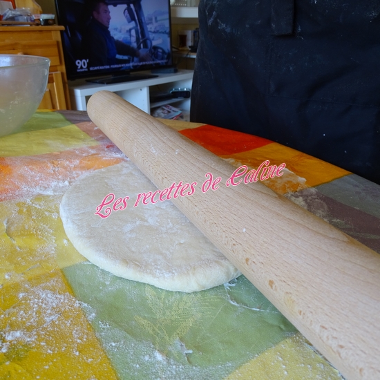 Pétrissez la pâte une dizaine de min puis étalez-là avec un rouleau à pâtisserie pour lui donner la forme d’un disque