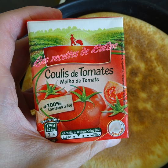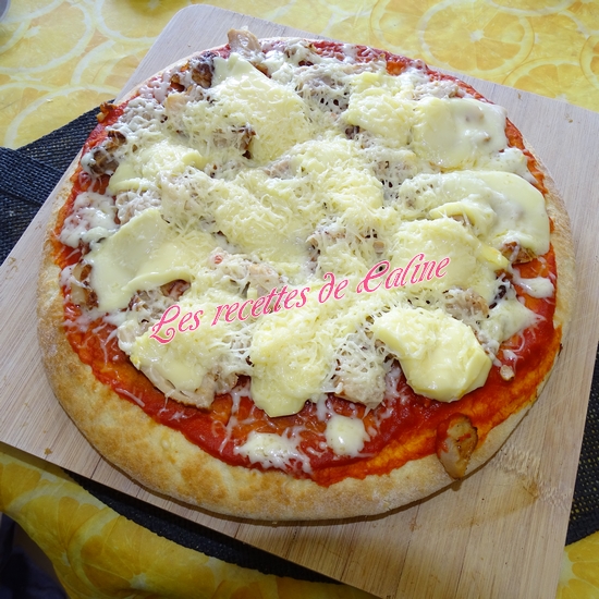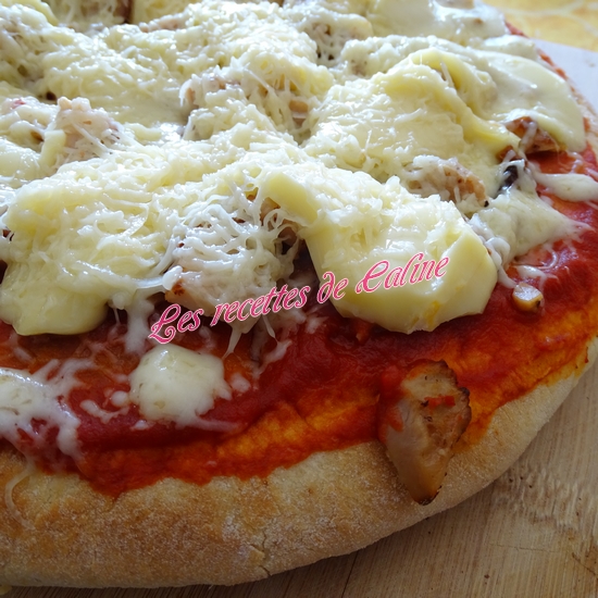 Pour ma part, j’ai garni ma recette avec du coulis de tomates, émincé de poulet, reblochon et emmental, mais après vous pouvez la garnir de ce que vous voulez