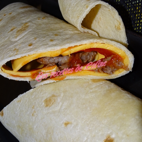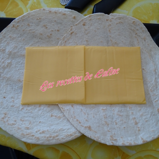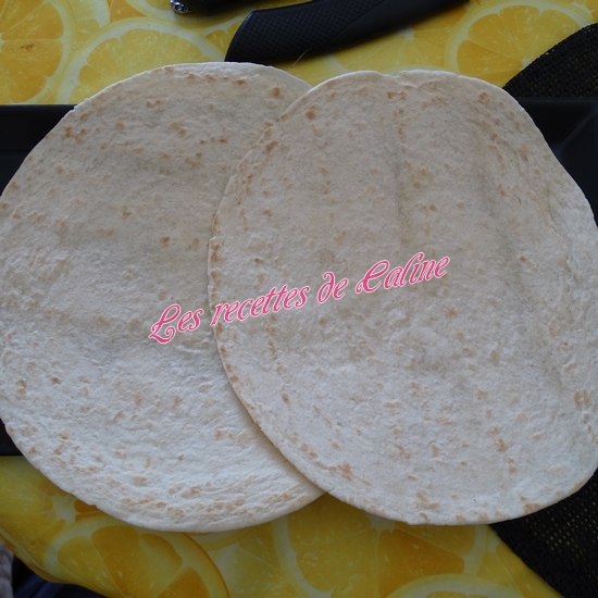 Posez sur une assiette 2 tortillas légèrement chevauché