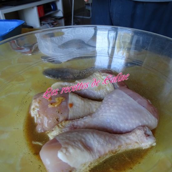 Faites mariner 30 min au minimum les pilons dans le mélange bouillon soit dans un saladier ou sac congélation comme je le fais.