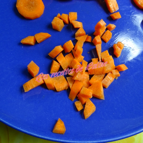 Epluchez et coupez la carotte en petits cubes et les linguiças (chorizo) en rondelles.