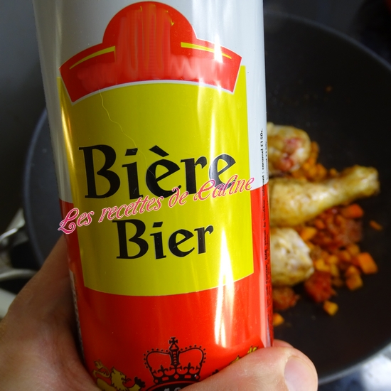 Salez, poivrez et mettre le cumin. Couvrir de bière et d’eau et laissez mijoter 15 min.