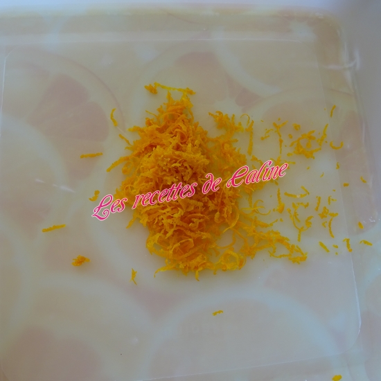 Prélevez le zeste de l’orange à l’aide d’un épluche-légumes et émincez-le finement.