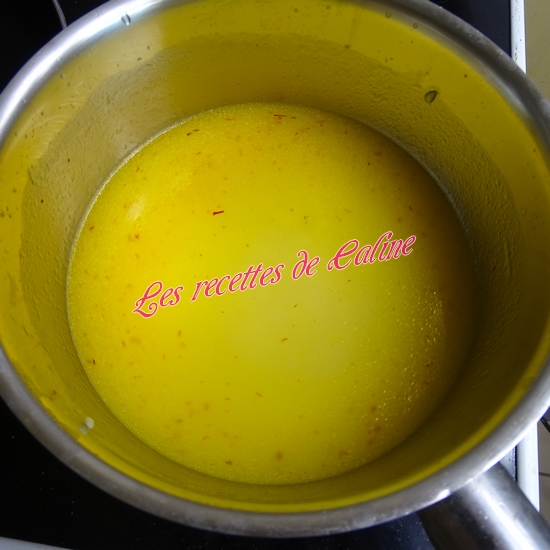 Si vous n’avez pas de filaments de safran, utiliser 4 petites dosettes de safran en poudre