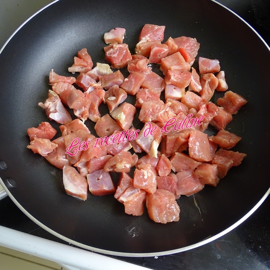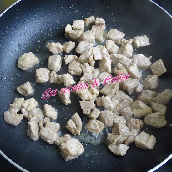 Coupez en morceaux le sauté de poulet. Faites-les dorer dans l’huile d’olive en les retournant régulièrement, 10 min.
