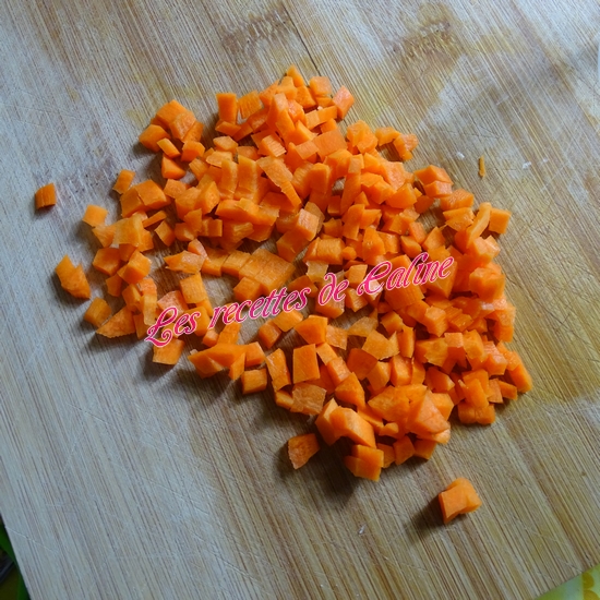 Émincez finement la carotte épluchée, le blanc de poireau lavé et l’ail pelée.