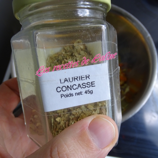Si vous n’avez pas de laurier concassé comme celui que j’utilise, mettre à la place 1 feuille de laurier idem pour le thym (mettre 1 petite branche)
