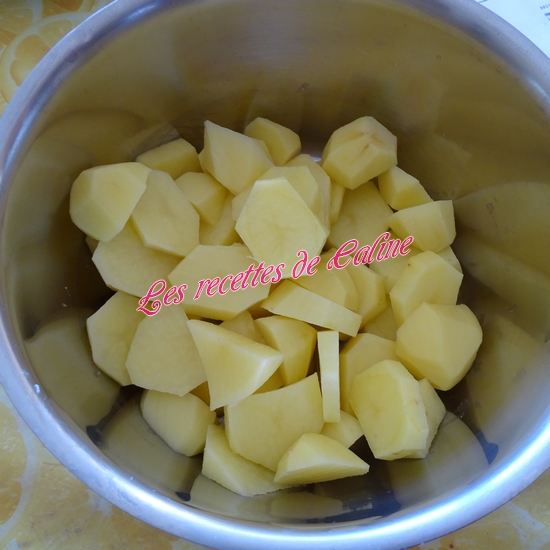 Épluchez les pommes de terre, coupez-les et les cuire 25 min dans de l’eau salé