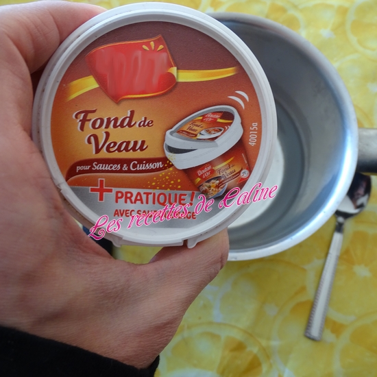 Préparez votre fond de veau avec 10 cl d’eau et 1 cuil à café de fond de veau en poudre, maintenir au chaud.