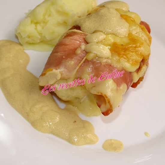 Placez-la dans une assiette puis ajoutez le roulé et la sauce.