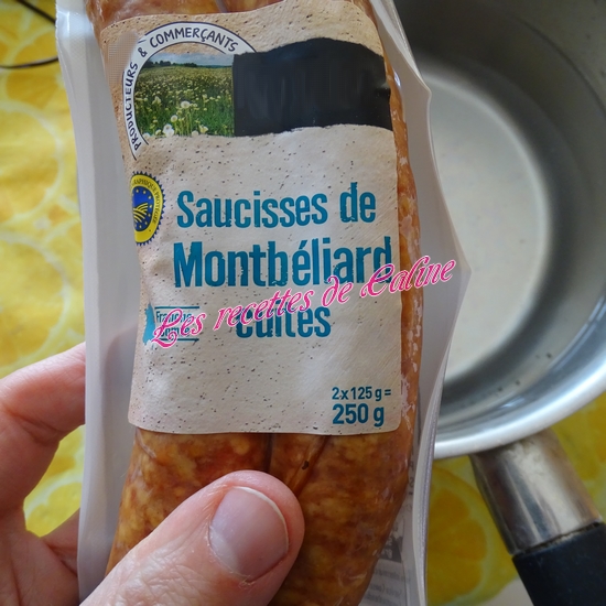 Faire cuire les saucisses de Montbéliard a l eau frémissante 15 min en surveillant (sans les percer).