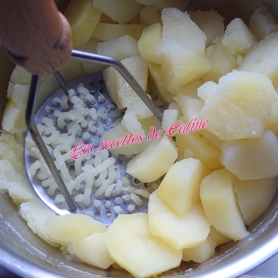 Quand les pommes de terre sont cuites, égouttez-les, puis écrasez-les au presse purée.