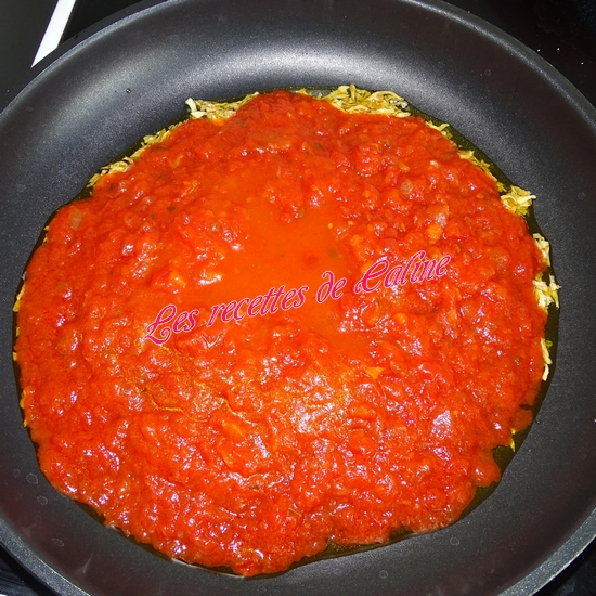 Dans une grande poêle ou cocotte, faire revenir l’oignon émincé, ainsi que le coulis.