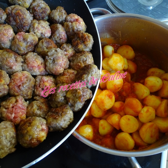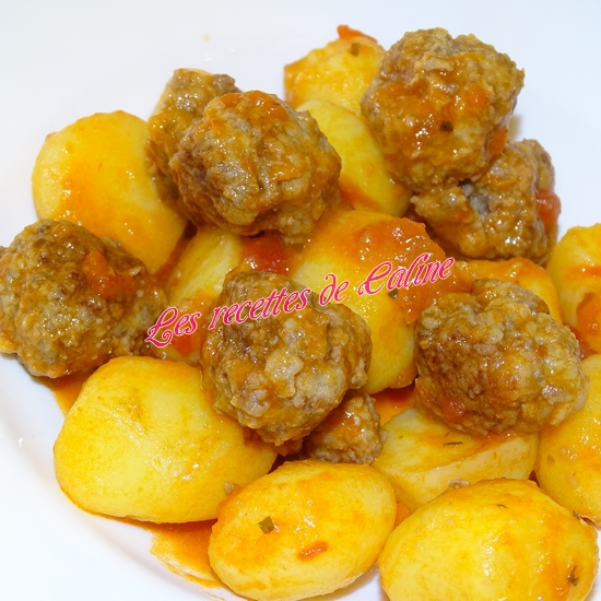 Ajoutez les pommes de terre et les boulettes à la sauce. Mélanger bien.