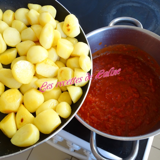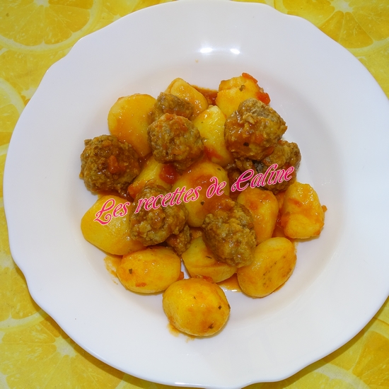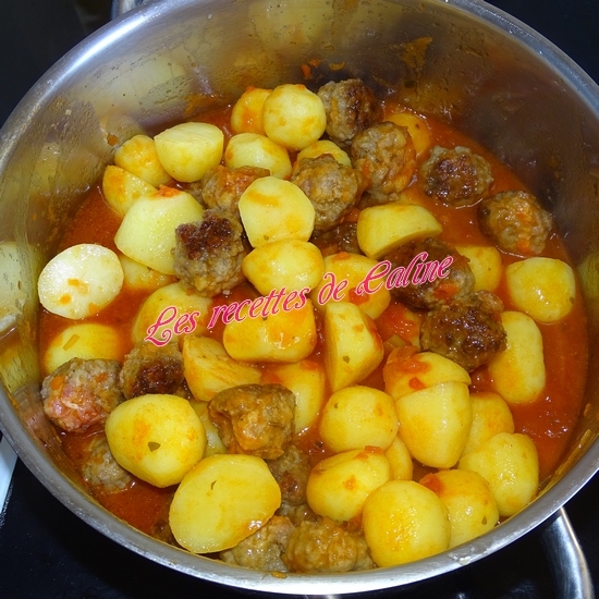 Ajoutez les pommes de terre et les boulettes à la sauce. Mélanger bien.