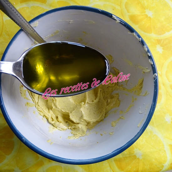 Versez l’huile d’olive, mélangez puis incorporez le café dissous et fouettez vivement.