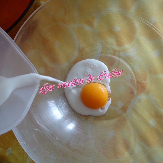Séparez le blanc du jaune d’oeuf (gardez le blanc pour la suite de la recette)
