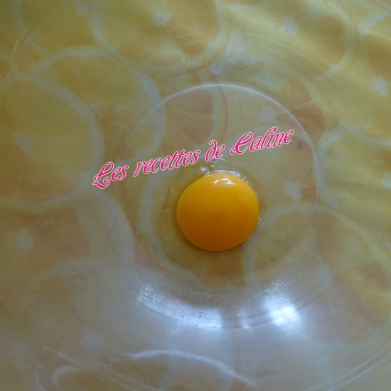 Séparez le blanc du jaune d’oeuf (gardez le blanc pour la suite de la recette)
