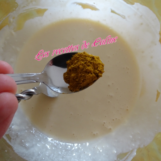 Ajoutez la farine, le curry, la levure chimique et le sel, puis mélanger pour obtenir une pâte homogène.