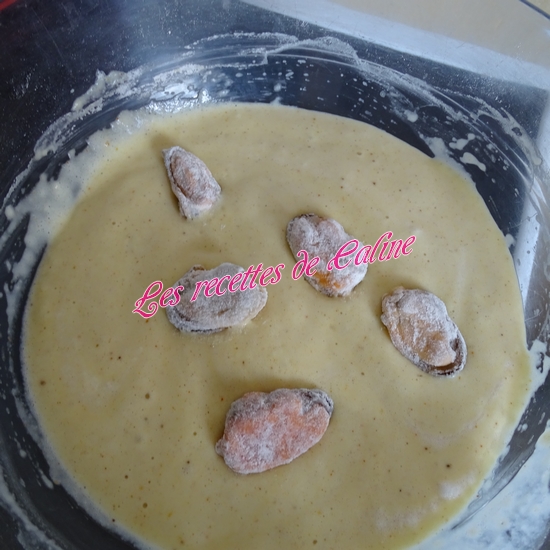 Trempez-les alors dans le mélange de pâte à beignet et récupérez-les délicatement avec une fourchette