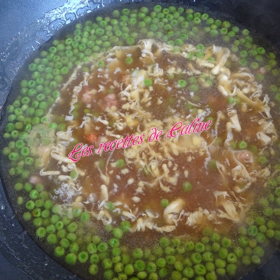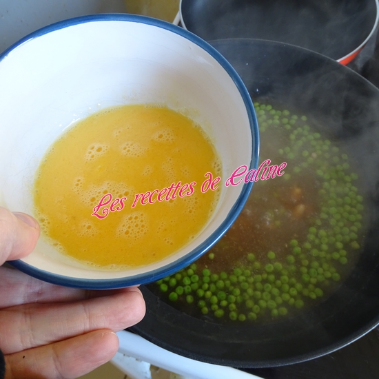 Baissez le feu, et ajoutez les œufs battus en filet, sans remuer la préparation.