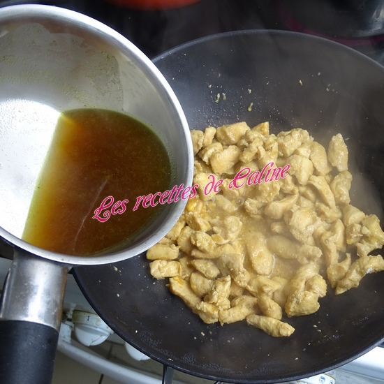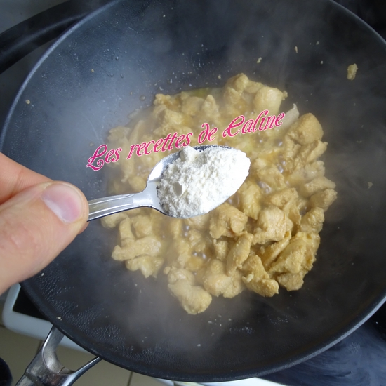 Saupoudrez de farine, ajoutez le reste de la marinade ainsi que le bouillon de volailles et cuire 6 min.