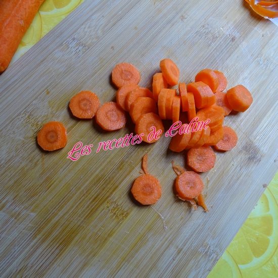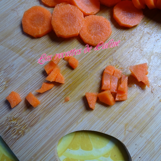 Epluchez et coupez les carottes en fines rondelles ou petite brunoise. Réservez