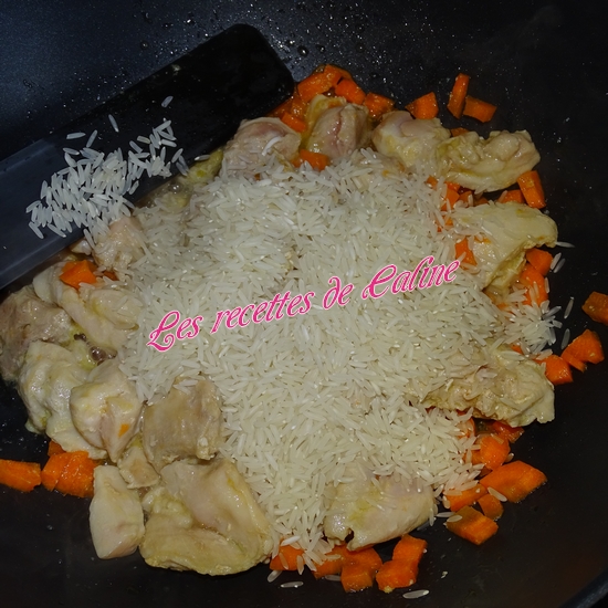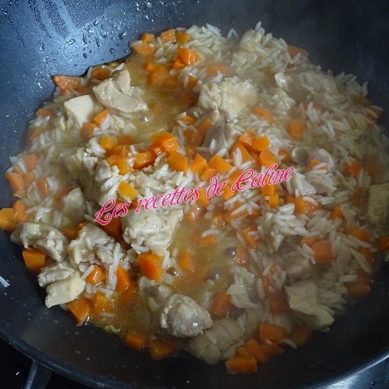 Ajoutez le riz, le fond de veau, le sel et le poivre. Bien mélanger.